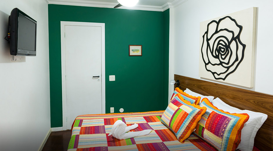 The Azaléia Suite has capacity for two guests, with a mini room. 32" LCD TV with cable TV, minibar, air conditioning, cabinet and wi-fi.
