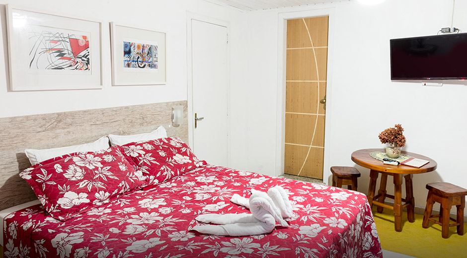 The Flamboyant loft has capacity for four guests, with private balcony. It has 32" LCD TV with cable TV, kitchen with microwave, mini-bar, air conditioning, closet and wi-fi.