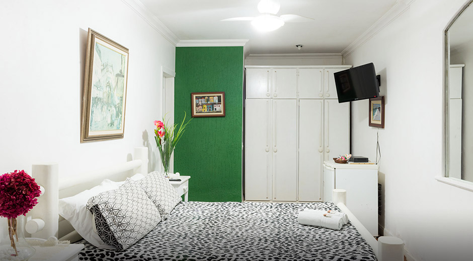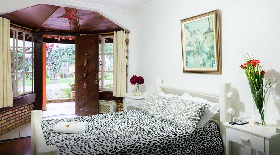 The Orquídea Suite has capacity for two guests. It has 32" LCD TV with cable TV, minibar, air conditioning, cabinet and wi-fi.